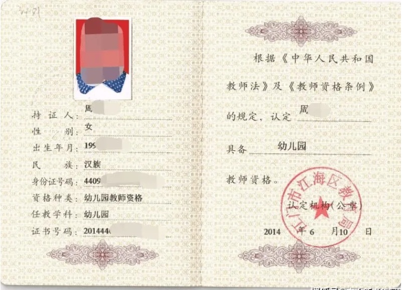 摘要:幼儿教师资格证内芯