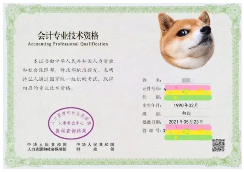 初级会计证书