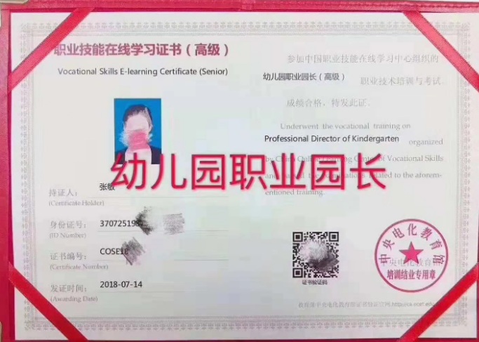 《幼儿园园长》是职业准入制度的重要组成部分,也是幼儿园工作管理者上岗的必备条件。可在首页进行查询。通用,终身有效。
